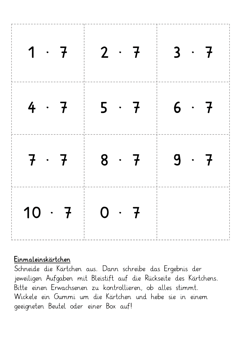 Kleine Kärtchen zum Üben aller 1x1 Reihen