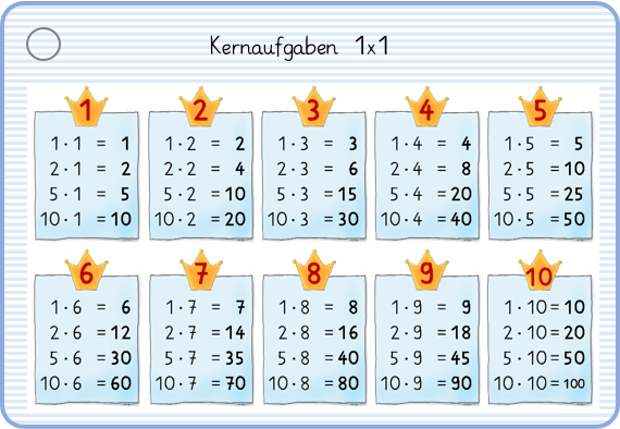Mit den Kernaufgaben lassen sich alle 1x1-Aufgaben "zusammen bauen"